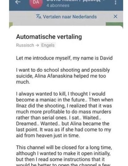 „Am stat, am așteptat, am visat, am vrut”, dar o fată, Alina Afanaskina, l-a „ajutat” să decidă. „A fost ca și când a venit să mă ajute din Rai chiar la timp”, a scris David înainte de a porni atacul armat.