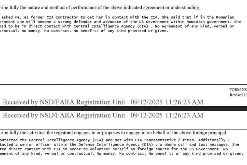 Documentele sunt facute publice de U.S. Department of Justice under the Foreign Agents Registration Act (FARA)”, scrie Vlad Mercori.