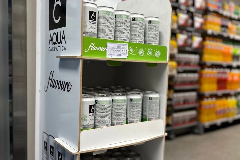 AQUA Carpatica Flavours, primul produs din România care se lansează la raft cu spatele produsului (contraeticheta)