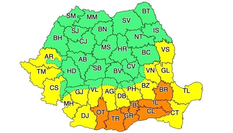 Zone afectate: județele Teleorman, Giurgiu, Călărași, Ialomița, Brăila, Constanța, Ilfov și municipiul București