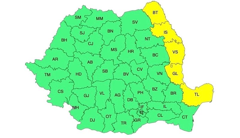 ANM a emis un cod galben de vânt puternic, valabil pentru 5 județe din țară